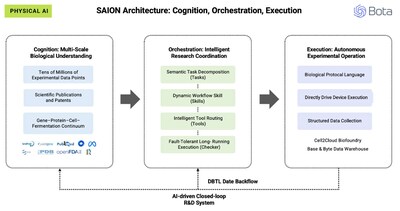 Through Bota’s proprietary Biological Protocol Language, SAION AI converts experimental designs into standardized instructions that directly drive laboratory hardware, feeding real-world data back into the Cognition Layer, enabling continuous model improvement and R&D acceleration.