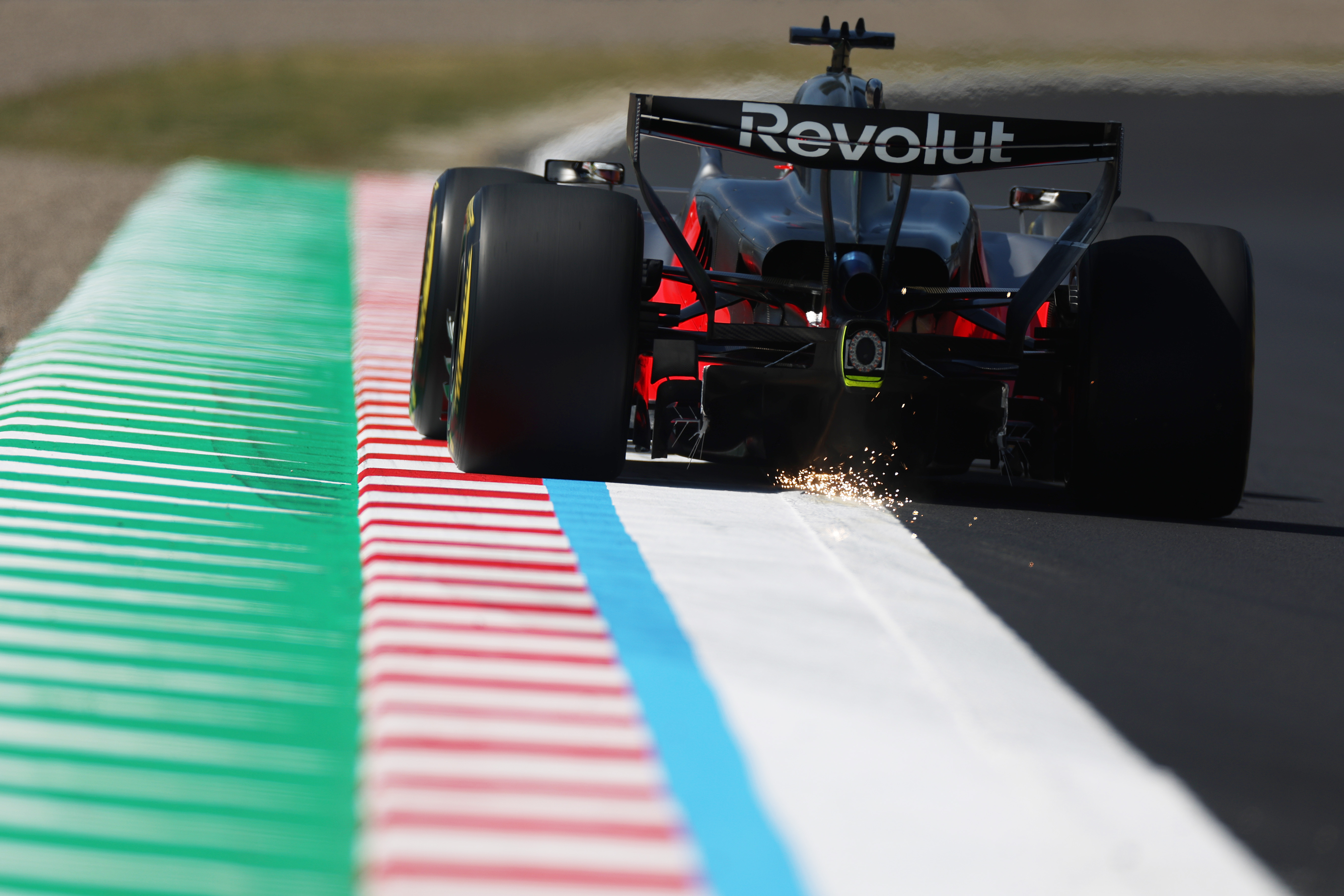 Nico Hulkenberg’s Audi throws up sparks during practice for the Japanese Grand Prix at Suzuka. Credit: Peter Fox/Getty Images